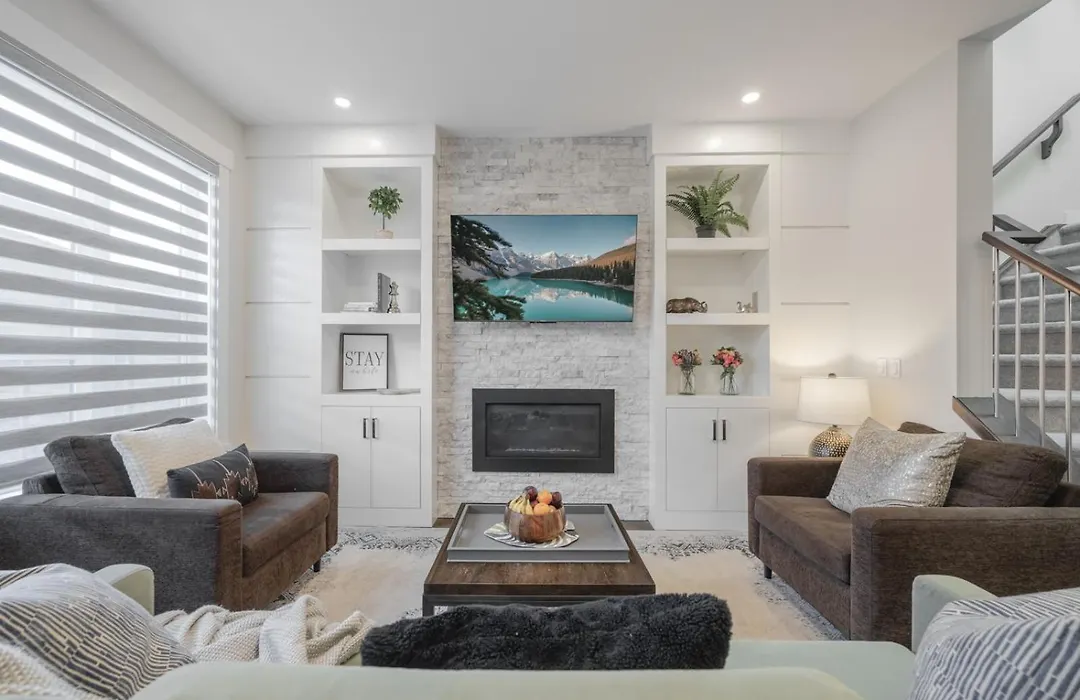 Deze 4-slaapkamer Home Theater With Ac, Dual Master Suites, Bbq YYC bevindt zich op 6 minuten wandelafstand van het Shaganappi Park en biedt snelle toegang tot tal van bezienswaardigheden. De 4-badkamer villa ligt in de Southwest Calgary wijk van YYC en biedt gratis priveparkeerplaatsen, evenals draadloos internet.